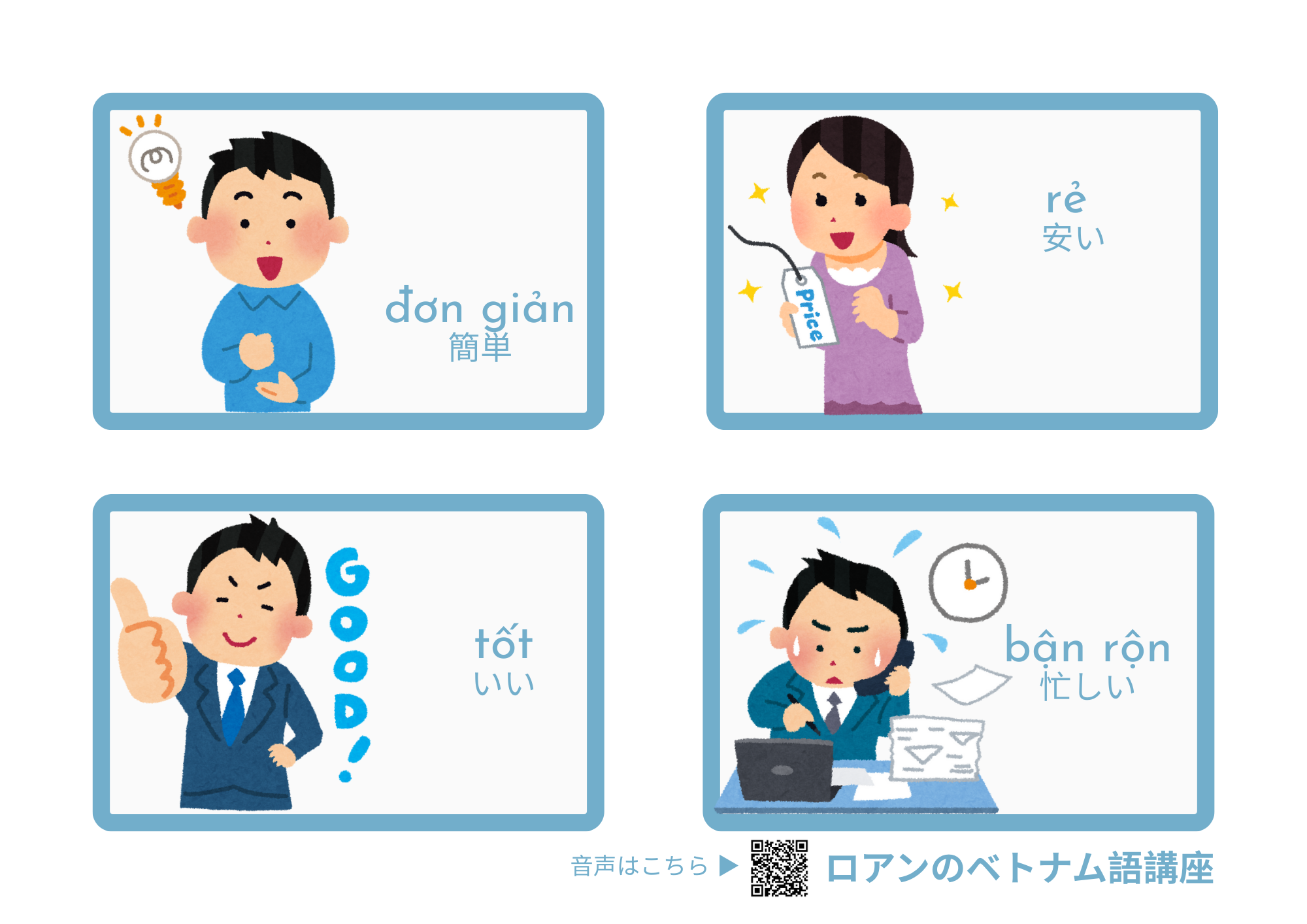 | Món này ngon và rẻ. | これはおいしくて安い。 |