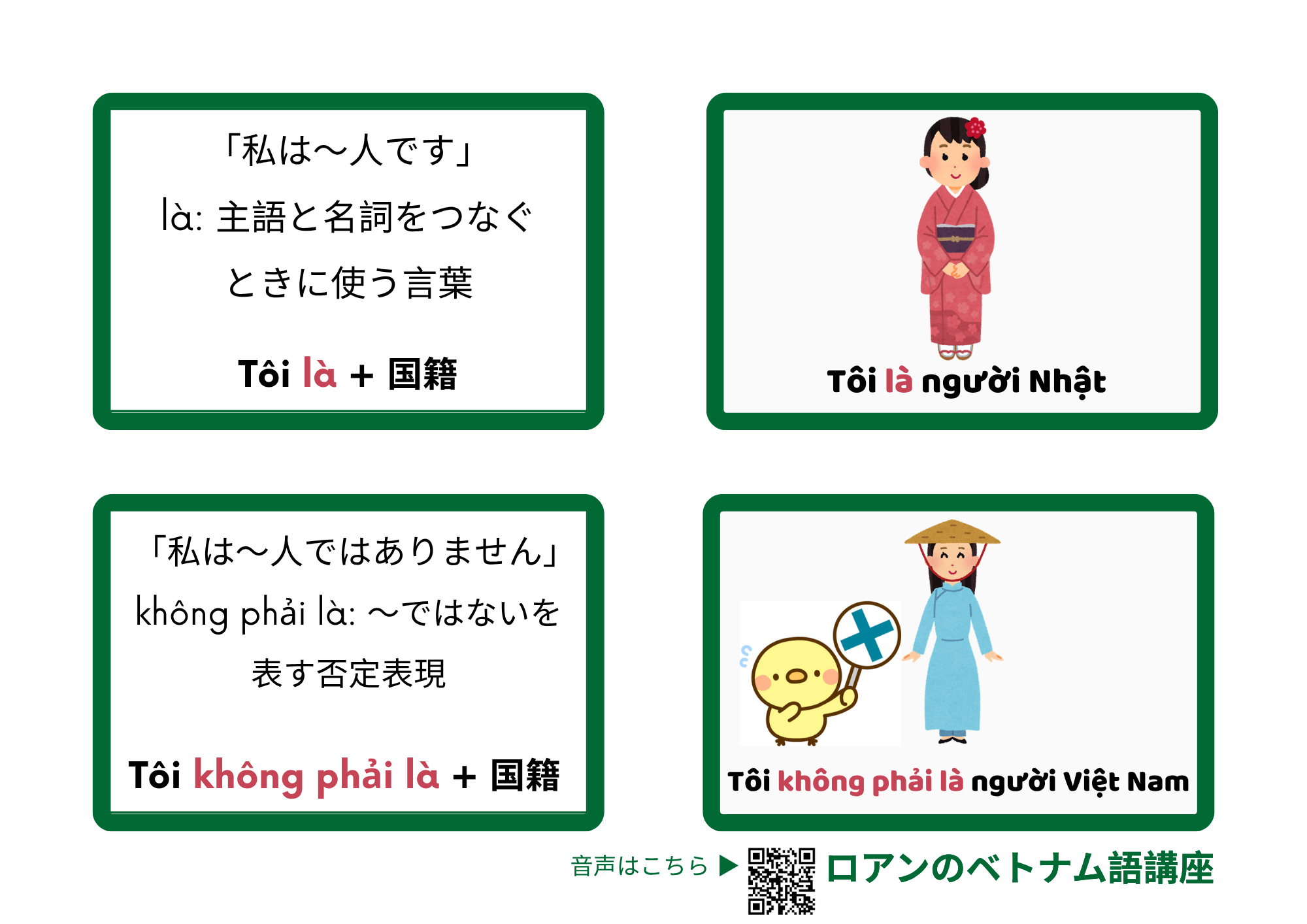 ベトナム語|国籍を伝える肯定・否定の基本文